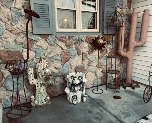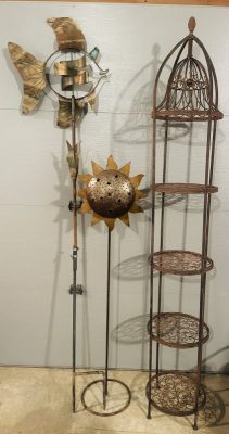 Henri Studio Boy With Wheelbarrow, Large Selection Of Outdoor Metal Art, Chimea Outdoor Fireplace, 24ft. Wood Ext. Ladder, True Temper Wheelbarrow, 7ft. Fiberglass Step Ladder, KWT-13-Keller Heavy Duty Aluminum Multi Ladder, 55-18 Briggs & Stratton Weed Eater, Black & Decker Edge Hog, Toro Personal Pace Lawn Mower, Performax 10” Table Saw, Black & Decker 10” Chop Saw, Misc. Power & Hand Tools, Carpenters Tool Chest, Antique Tools, and Much More...